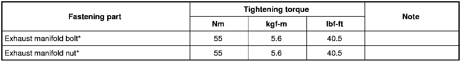 For the tightening torques of fasteners not specified in this section, refer to Fastener Information Fasteners Information.