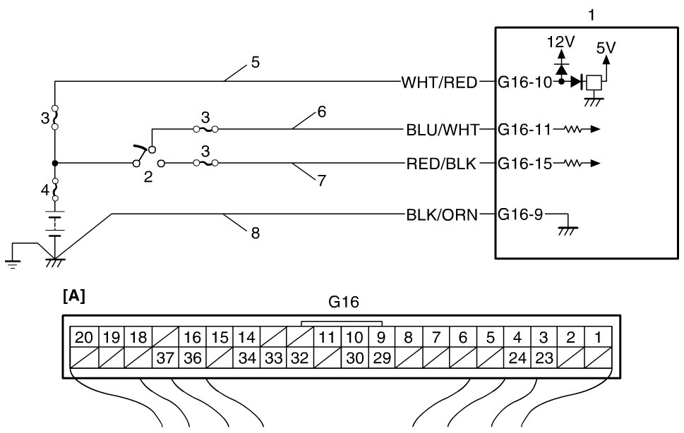 Check for proper connection to "Power source", "ACC signal" and "IG ON signal" terminal of keyless start control module connector.