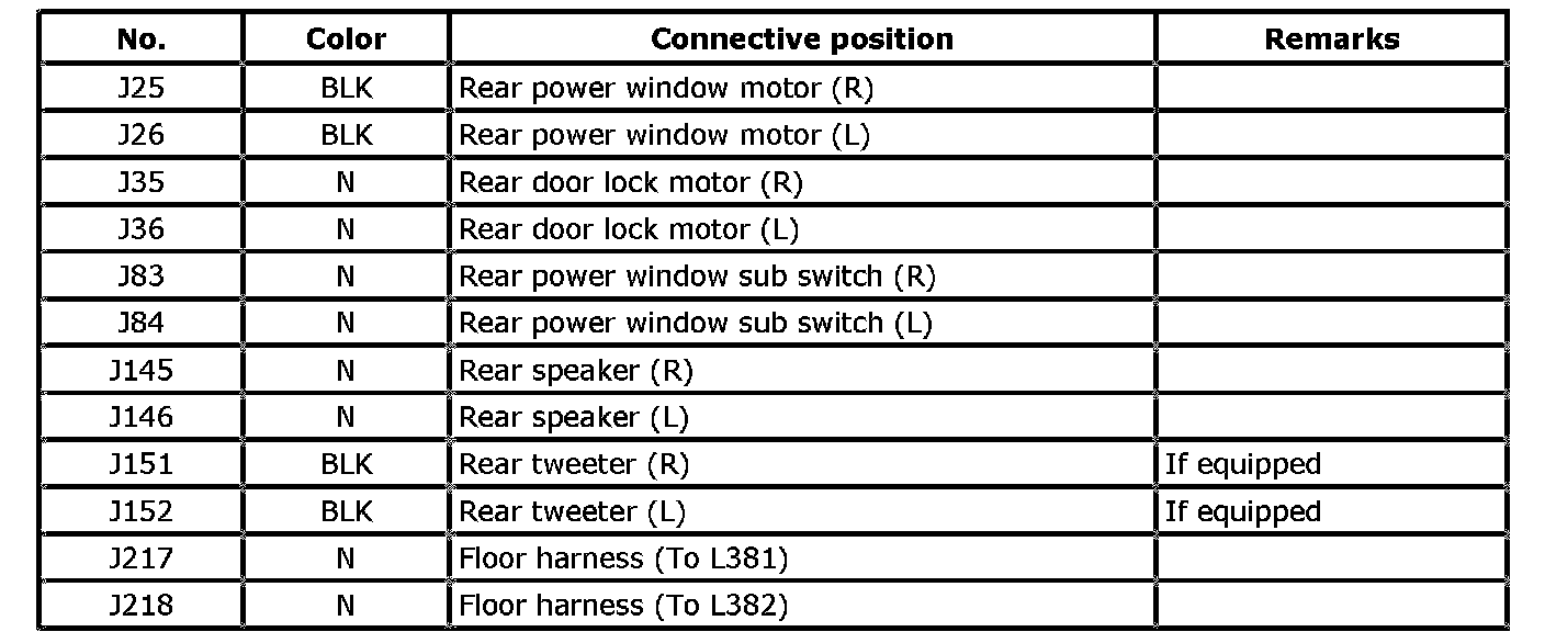 J: Front and Rear Door Wire and Rear Door Wire / K: Roof Wire, Roof Audio Antenna Wire (Hatchback)