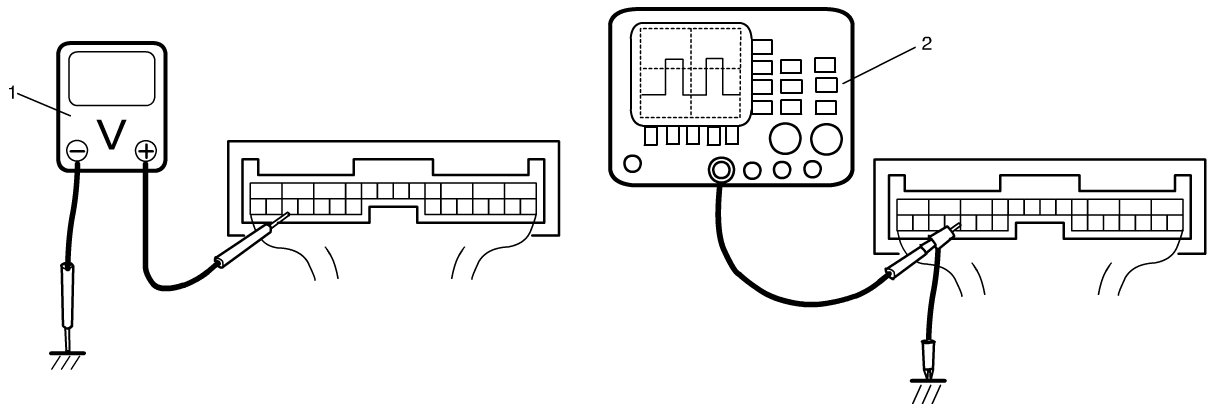 2) Check signal using oscilloscope (2) connected to each terminal of connectors.