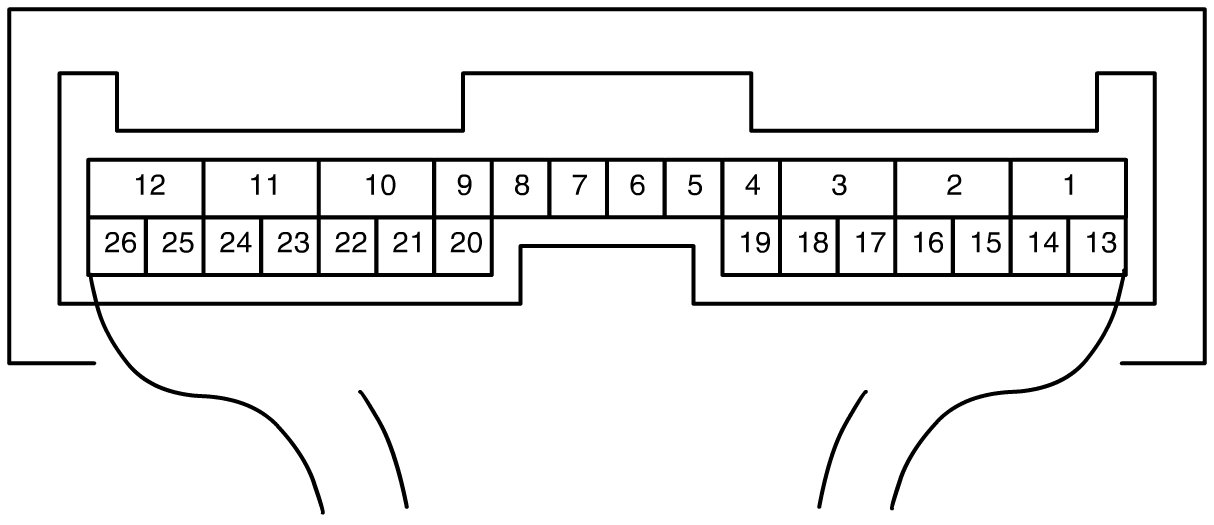 Terminal arrangement of 4WD control module connector (Viewed from harness side)