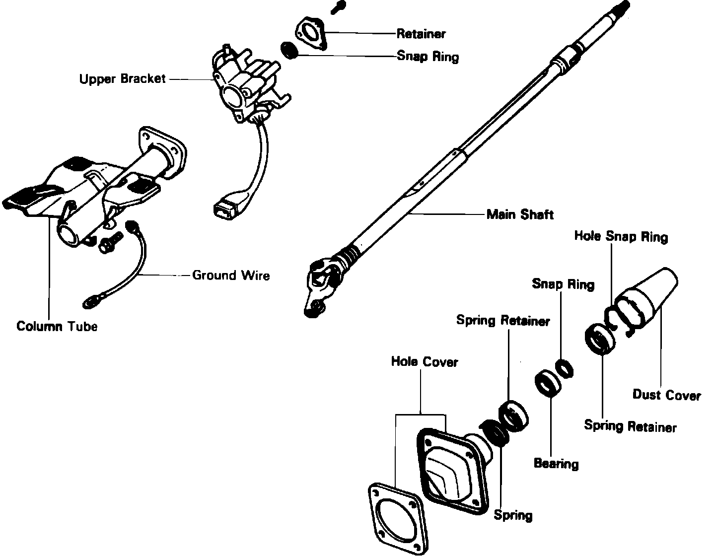 Fig. 15 Exploded view of steering column. 1984 Starlet:
