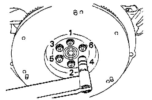 Flywheel Torque Sequence - Tighten To Specified Torque In 2 Or 3 Passes: