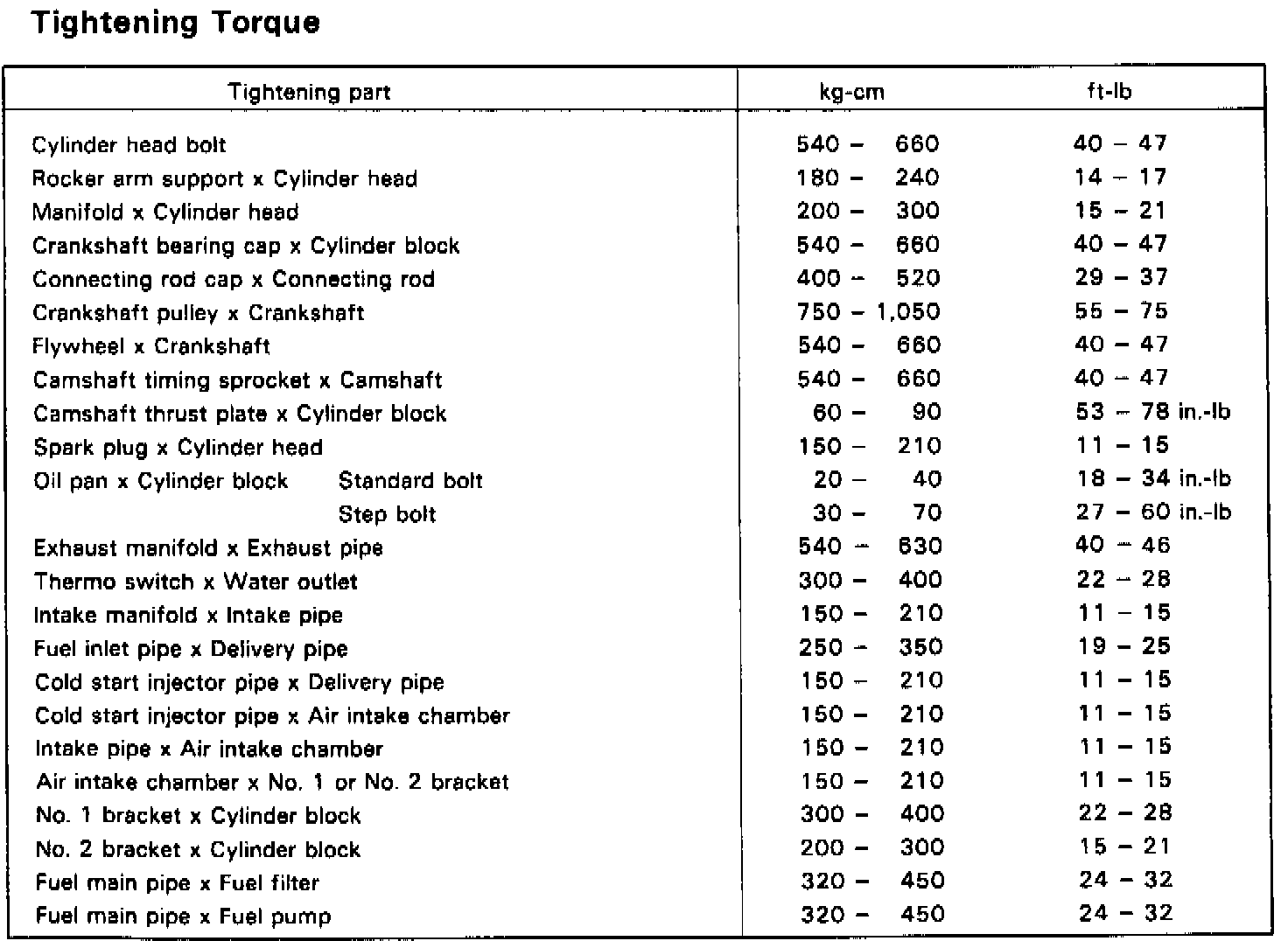 Torque Chart: