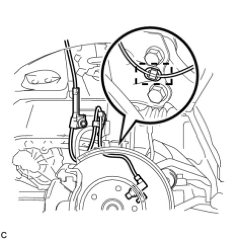 (c) Remove the clamp and separate the front speed sensor from the front shock absorber.