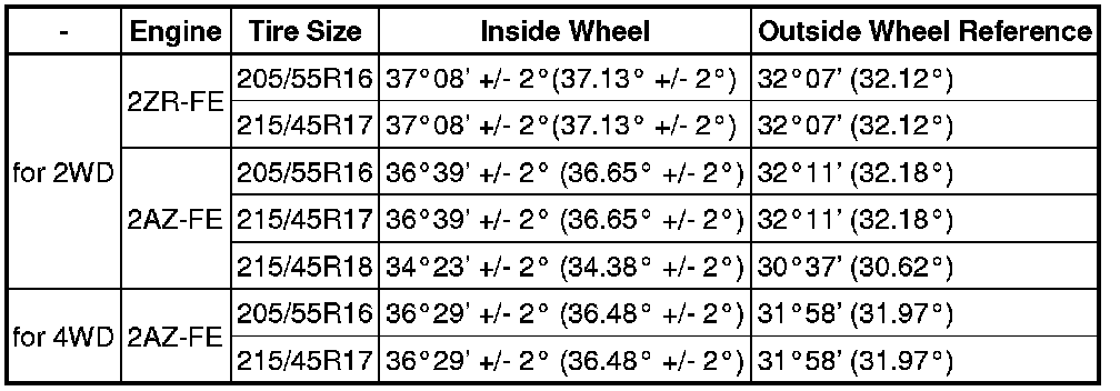 (b) Turn the steering wheel to the left and right full lock positions, and measure the turning angle.