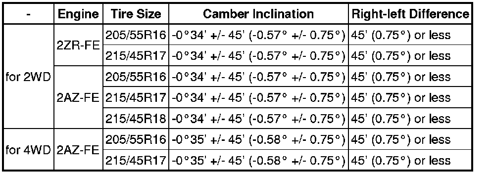 The body and suspension may be damaged if the camber is not correctly adjusted according to the table above.