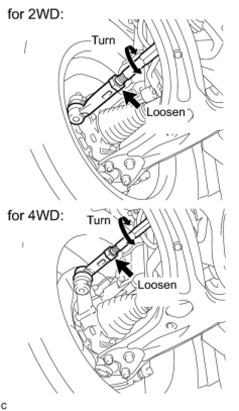 (d) Turn the right and left rack ends by an equal amount to adjust the toe-in to the center value.