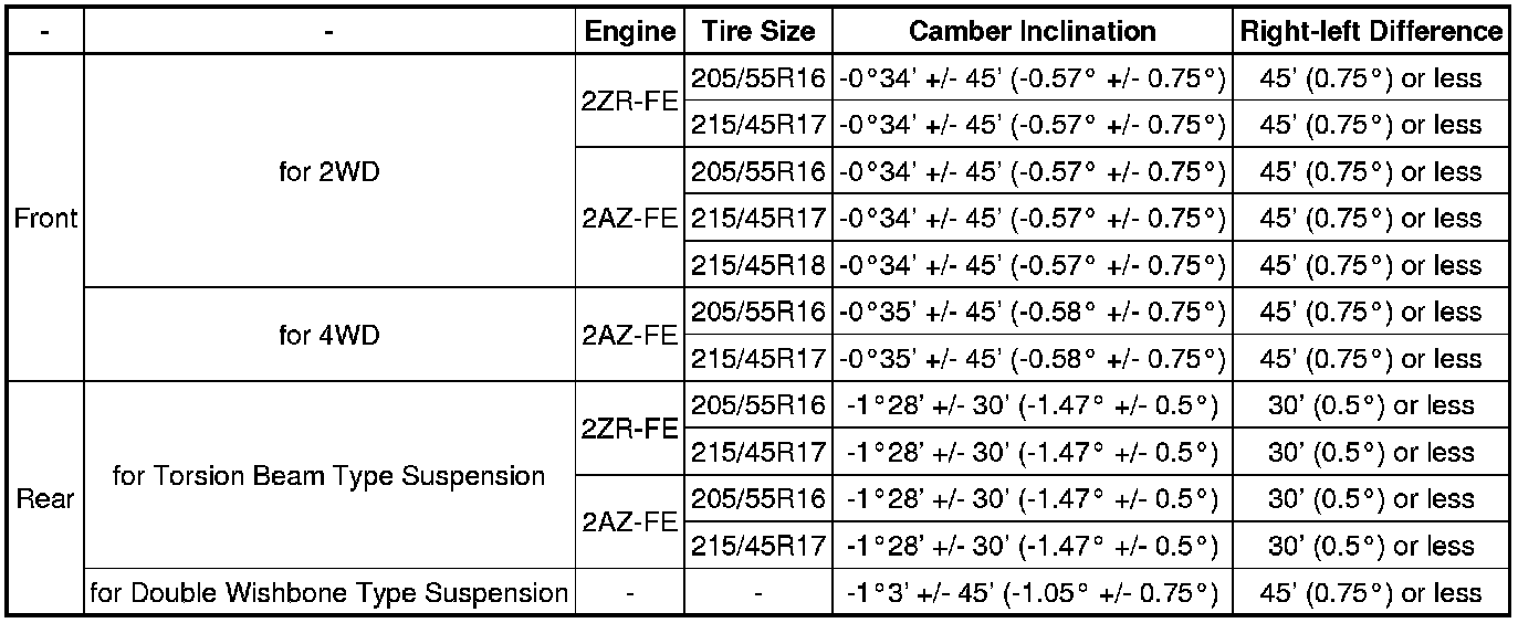 Camber Inclination (Unloaded Vehicle)