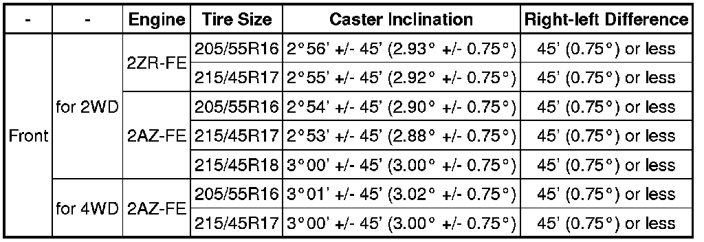 Home >> Toyota >> 2011 >> Matrix FWD L4-1.8L (2ZR-FE) >> Repair and Diagnosis >> Specifications >> Mechanical Specifications >> Alignment >> Service Data