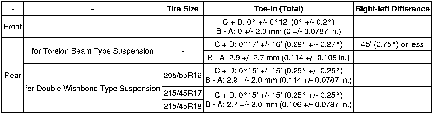 Toe-in (Unloaded Vehicle)