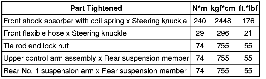 SPECIFICATIONS: ALIGNMENT / HANDLING DIAGNOSIS: TORQUE SPECIFICATIONS
