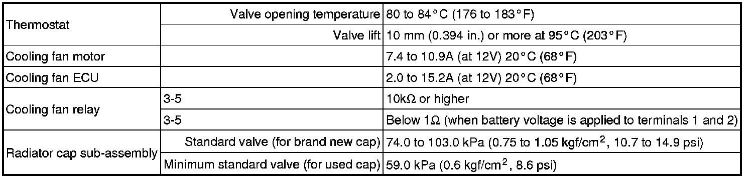 SPECIFICATIONS: 2ZR-FE COOLING: SERVICE DATA