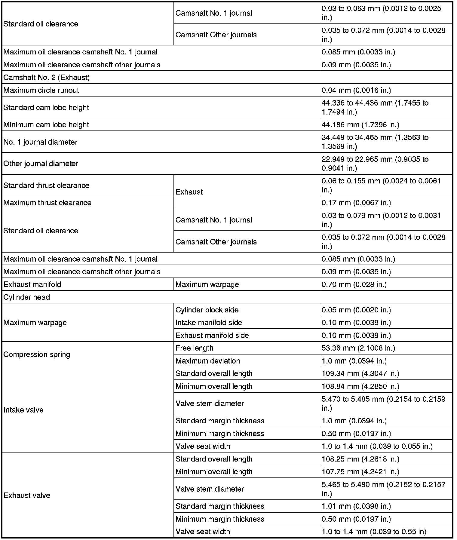 SPECIFICATIONS: 2ZR-FE ENGINE MECHANICAL: SERVICE DATA