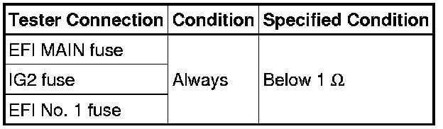 2. INSPECT FUSES (EFI MAIN, IG2, AND EFI NO. 1 FUSES)