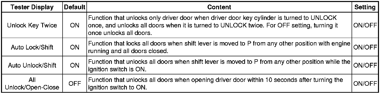 DOOR LOCK: POWER DOOR LOCK CONTROL SYSTEM: CUSTOMIZE PARAMETERS