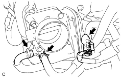 (h) Connect the 2 water by-pass hoses and the throttle body connector.