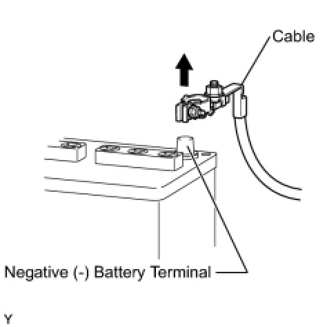 (c) When the battery cable is disconnected, the clock and radio settings and stored DTCs are cleared. Therefore, before disconnecting the battery cable, make a note of the settings.