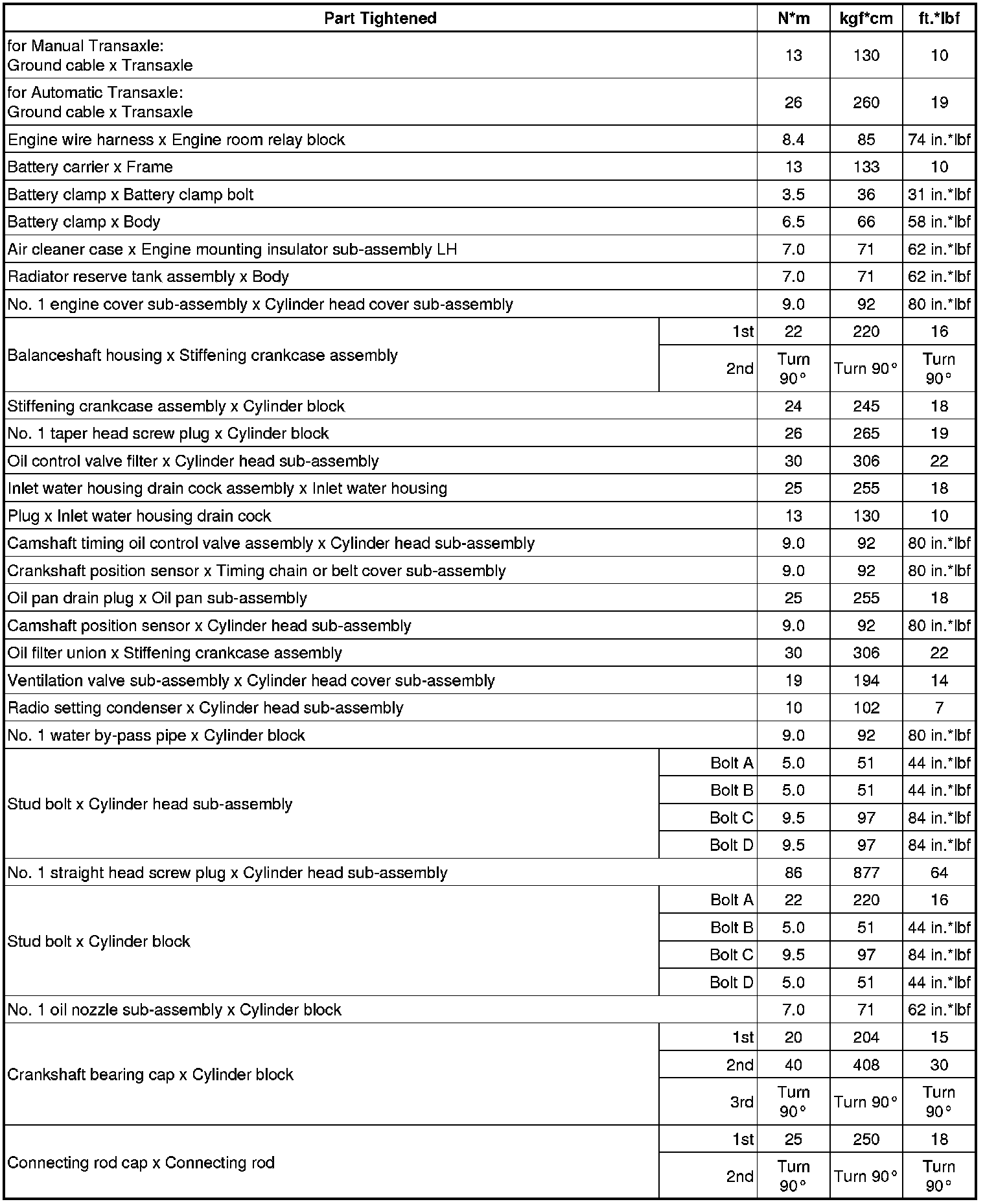 SPECIFICATIONS: 2AZ-FE ENGINE MECHANICAL: TORQUE SPECIFICATIONS