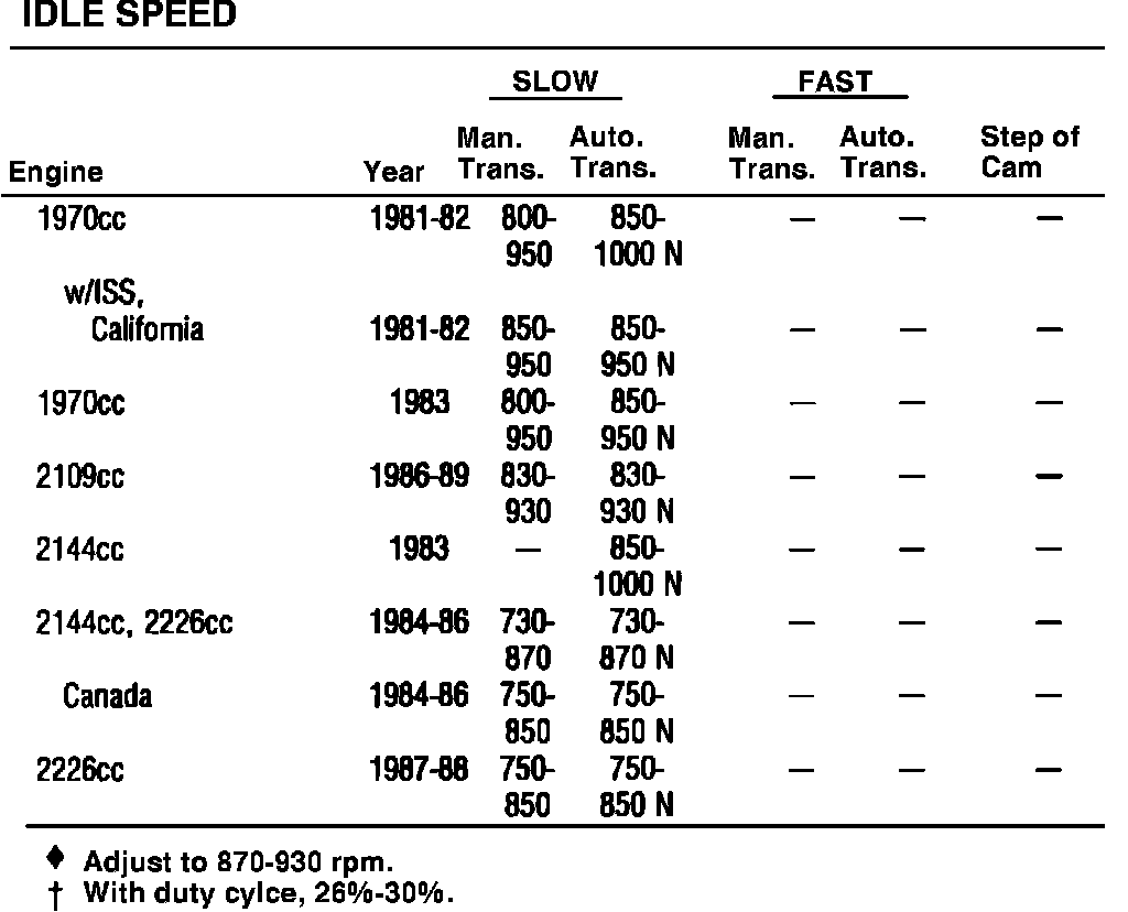 Idle Speed Specifications:
